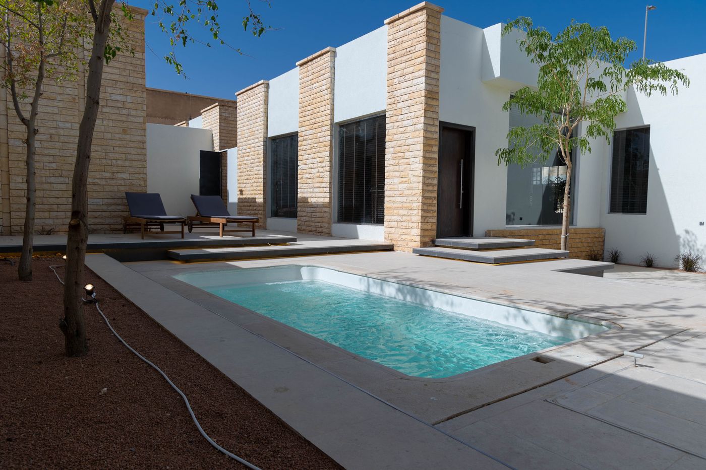 مكان جميل وفريد من نوعه… غرفة معيشة كبيرة ، غرفة نوم ، حمام ، مطبخ مجهز ، Wi-Fi ، كراج ، Netflix ، وذكريات لن تُنسى أبدًا. الشاليه نظيف للغاية ... يتم تنظيف المسبح يوميًا. الماء والسناكس ومناشف استخدام مرة واحده يتم تقديمها مجاناً… الدخول ذاتي باستخدام رقم سري.